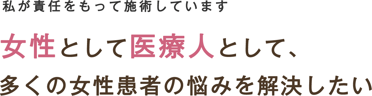 当院には長年悩みを抱えている女性が多くいらっしゃいます。最初は不安な表情を浮かべた方も、最後には必ず素敵な笑顔で医院を後にしていき、来るたびに美しくなって行かれる姿をみるのが本当にうれしいです。